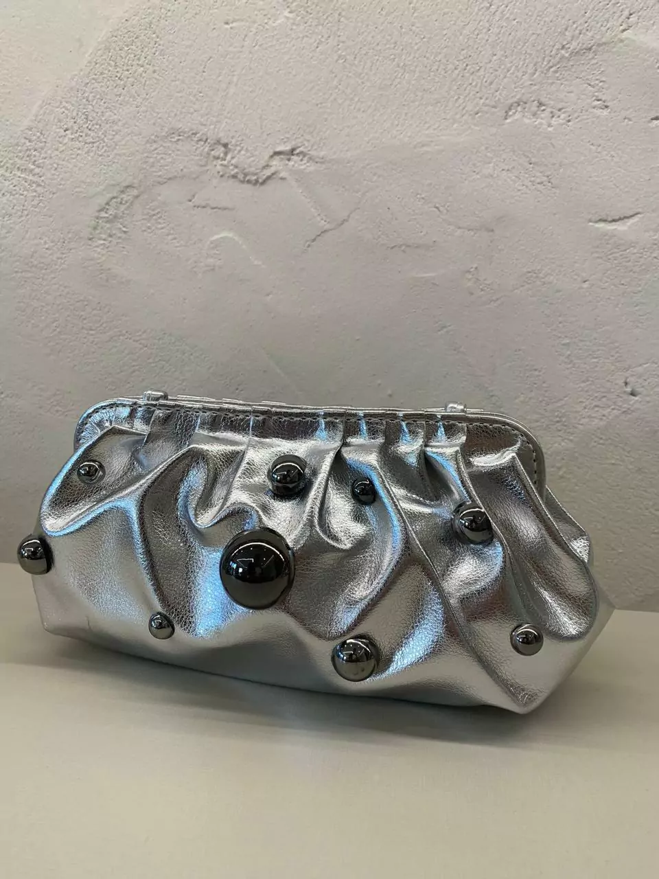 Descubra a Bolsa Pequena Metalizada com Aplicações de Bolas, uma peça que une estilo sofisticado e praticidade. Perfeita para complementar looks sociais, ela é ideal para eventos como casamentos, formaturas e festas elegantes.