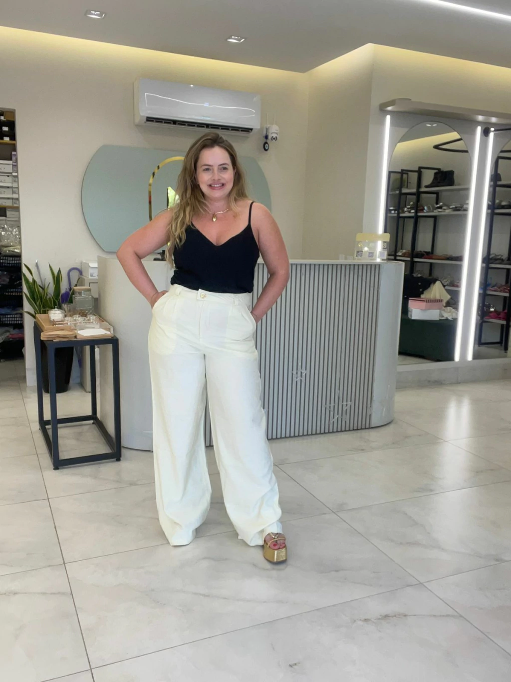Ideal para passeios, encontros ou até mesmo para o ambiente de trabalho, a Calça Pantalona é uma verdadeira aliada na construção de looks variados. Combine-a com uma blusa leve ou uma camisa estruturada para um visual que transita com facilidade entre o descontraído e o elegante.